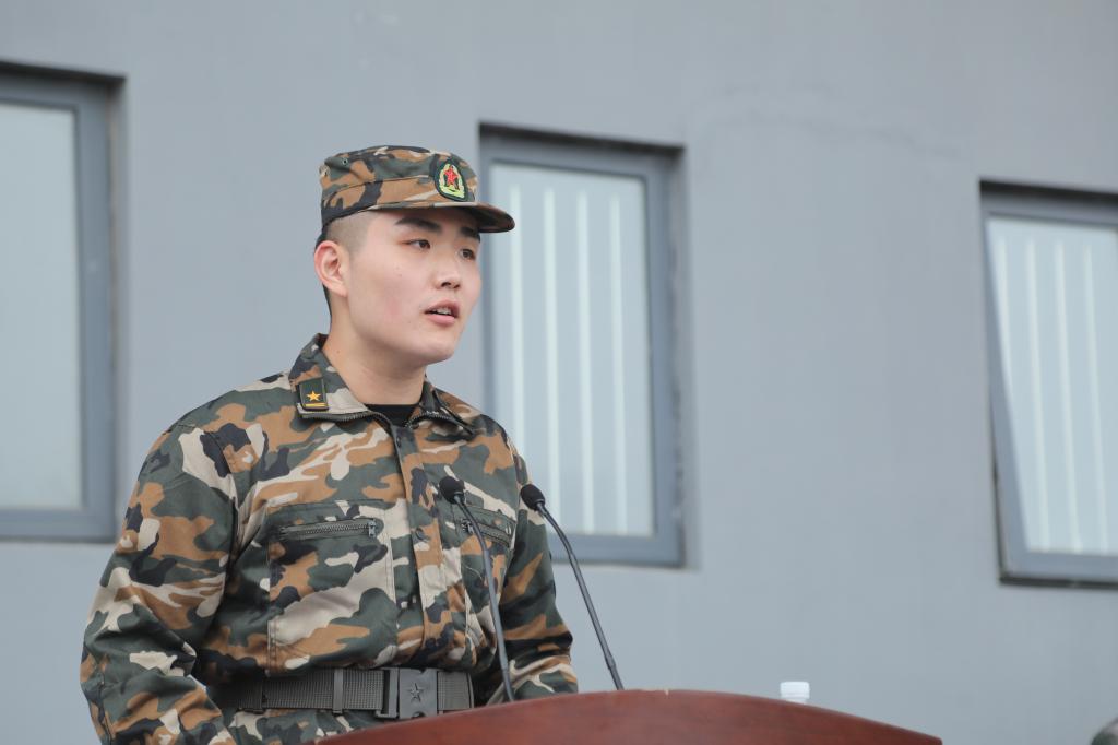 学生代表李维凯表达了学生对于军训这一磨砺意志、培养精神的必修课的认识,倡议2020级受训学生努力学习掌握军事理论和技能,增强身体素质,培养爱国热情,以坚定的意志承载完成军训任务的信心。