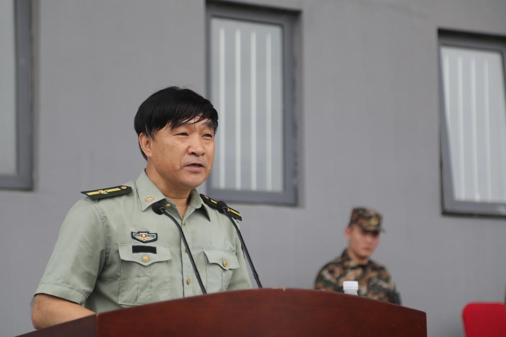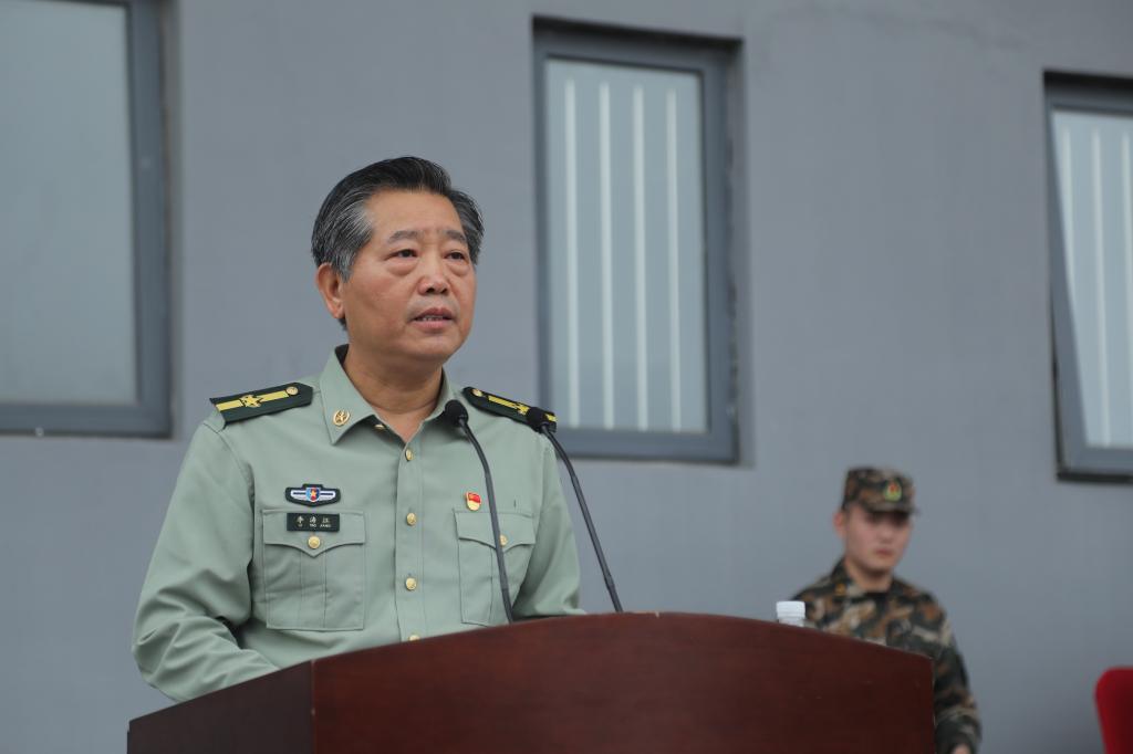 军训旅政委李涛江作军训动员,要求全体师生提高思想意识,努力做好军训工作;严肃军训纪律,强化集体观念;增强疫情防控意识,严守安全底线;培养吃苦耐劳的作风,增强攻坚克难的信心和勇气,继续发扬家国同心、艰苦奋斗、惟真惟实、追求卓越的石大精神,全身心投入军训。