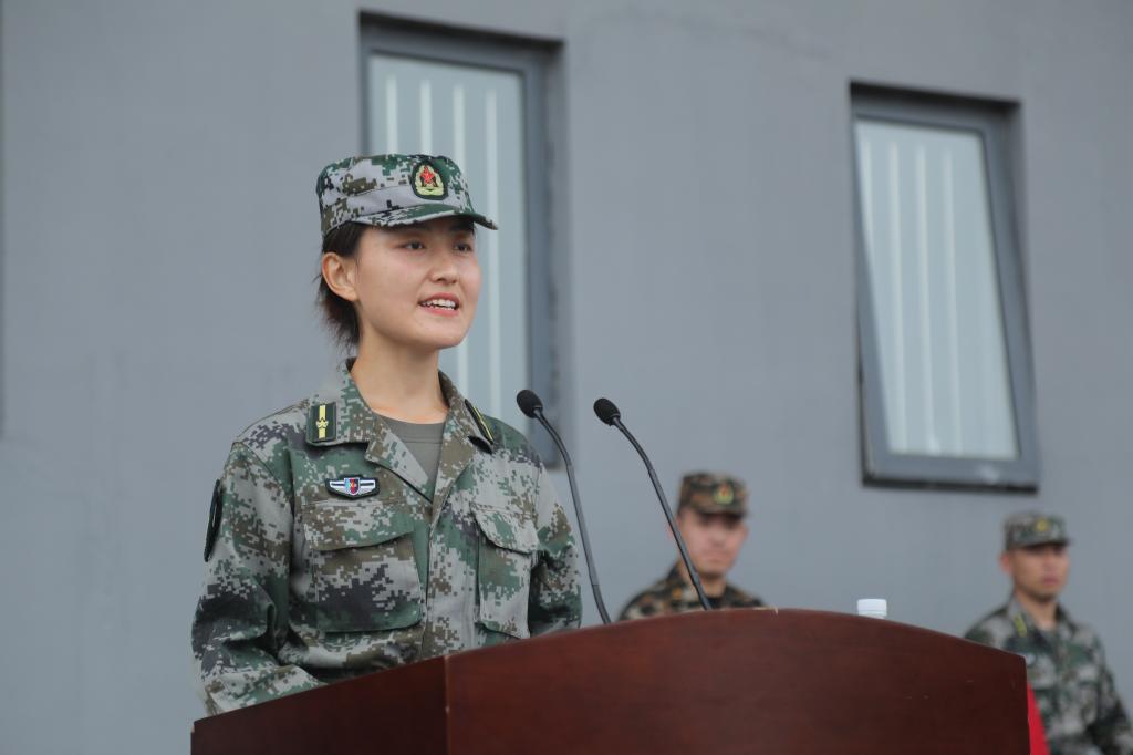 教官代表王夏承诺思想上高度重视、作风上严格要求、科学严密实施、和谐学教关系和氛围,号召石大学子刻苦训练,树立集体观念,严于律己、遵守纪律,通过军训展示学校良好形象。
