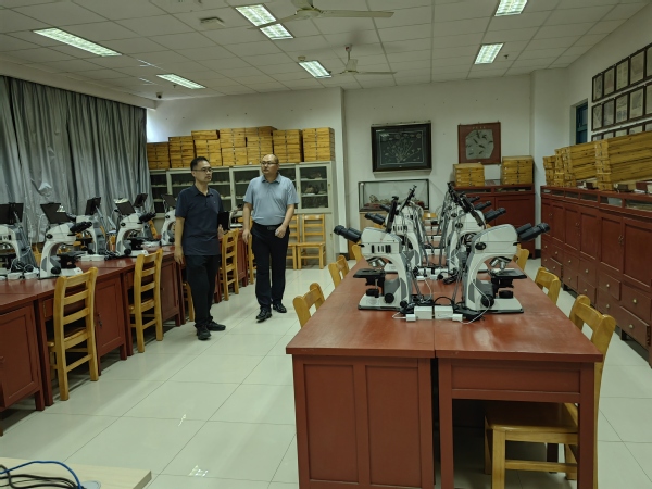 2025年9月2日,学校资产与实验室管理处副处长李彬一行三人对学院的所有的教学和科研实验室进行安全检查,学院副院长王健陪同检查。