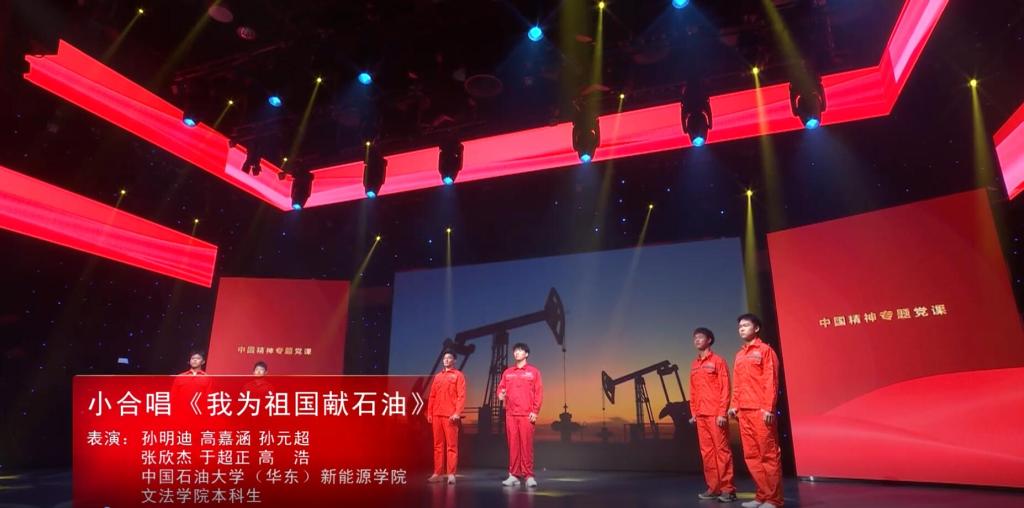 “作为石大的学生,能够参演中国精神党课的录制,我感到十分自豪。歌曲《我为祖国献石油》慷慨激昂的旋律,让我们感受到了当年石油人‘宁肯少活20年,拼命也要拿下大油田’的豪情壮志。”石大山能新能源学院2021级本科生孙明迪表示,他将以先辈的精神为指引,努力学习,勇敢担当,将来以实际行动为祖国能源行业做出贡献。