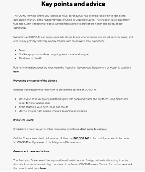 为接收学校最新通知和信息,请学生定期查看电子邮件、Moodle网站和大学网站/Covid-19常见问题。请确保遵循常见问题解答中关于保护个人健康以及如果必须自我隔离时应采取的措施的所有指导。