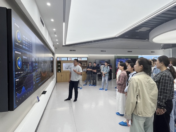 在青岛文达通科技股份有限公司,作为国内领先的智慧城市整体解决方案提供商,文达通致力于5G+AIoT技术在智慧社区、智能家居等场景中的融合应用。在交互式体验区,同学们亲身体验了指纹识别、手掌静脉识别、智能门控系统等前沿技术的实际操作,直观感受到数字化技术如何赋能日常生活与社会治理。这场“沉浸式”的科技之旅,不仅拓宽了同学们的专业视野,也启发了外语专业学生对未来“语言+技术”“沟通+智能”融合发展路径的新思考。