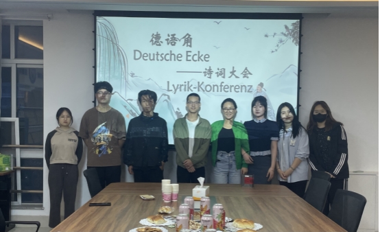 Во время уголка немецкого языка студенты узнали о важном месте стихотворения в китайской и немецкой литературе, вместе читали на немецком языке известные китайские стихотворения «Весеннее утро», «Взирая на священную вершину», «Оленья засека» и т.д. Кроме того, под руководством преподователя Сунь Цзинь, участники вместе познакомились с «Эльфхен» - стихотворение, состоящее из 11 слов. В финальном конкурсе все участники написали на закладке свое стихотворение на немецком языке и поделились с другими. В итоге Пань Жуйян, девушка по специальности материаловедения, завоевала первенство уголка немецкого языка с помощью стихотворения «Молодежь». Атмосфера была напряженной и оживленной. Данное мероприятие позволяет студентам узнать больше знания о языках и культурах, понимать немецкий язык.